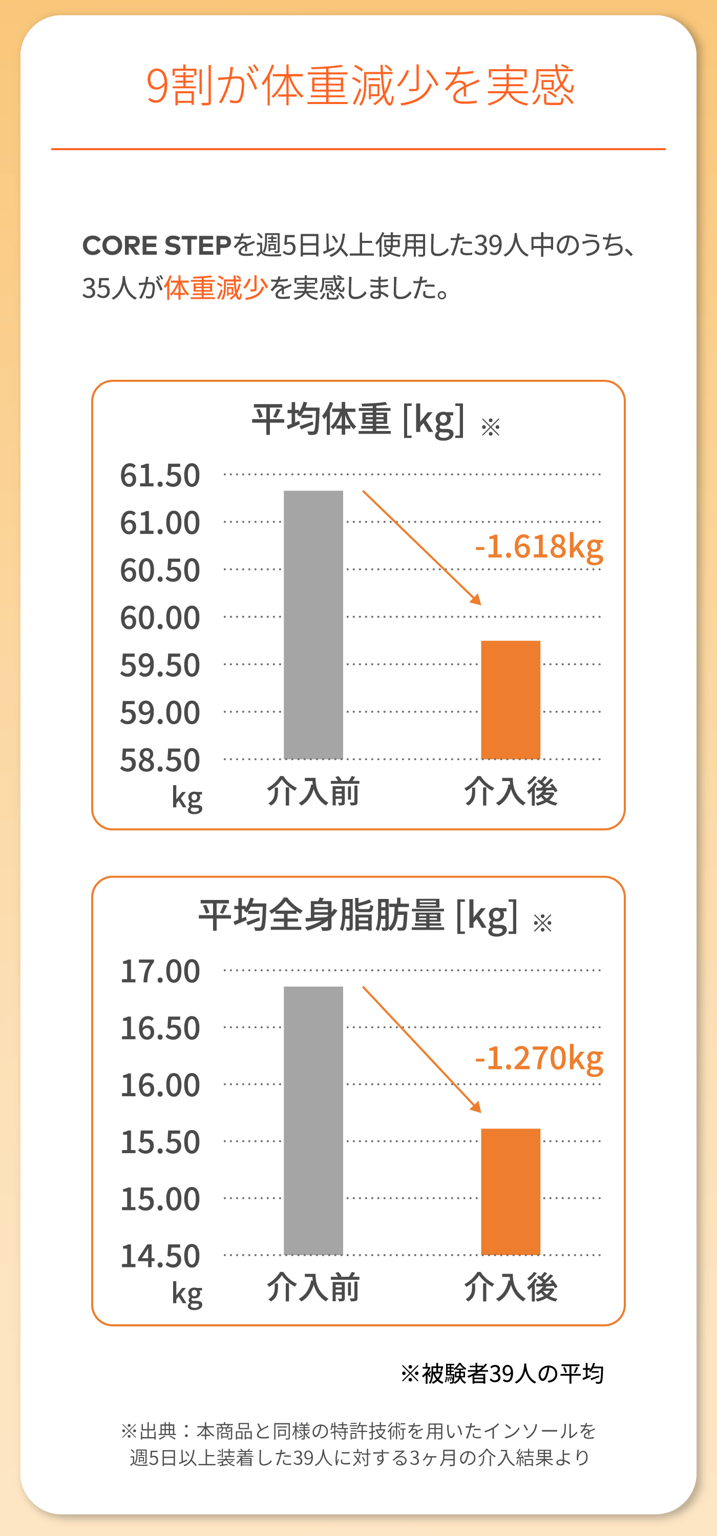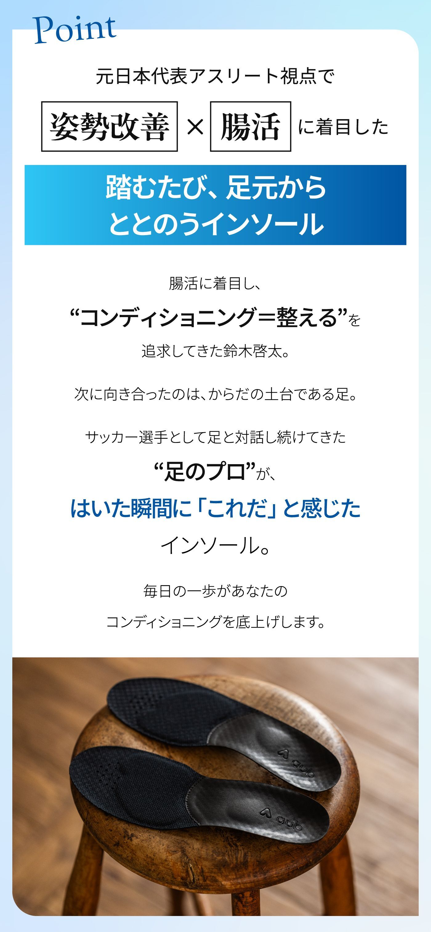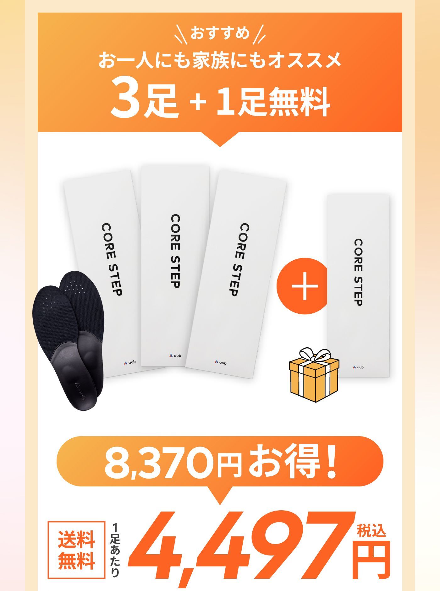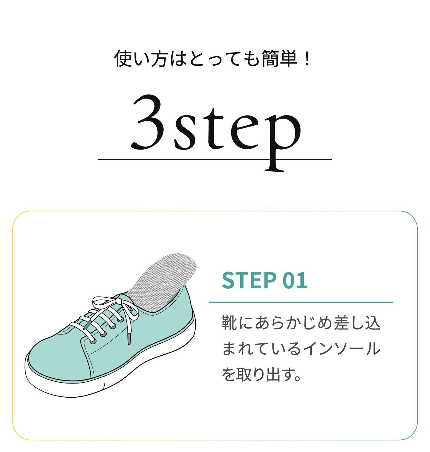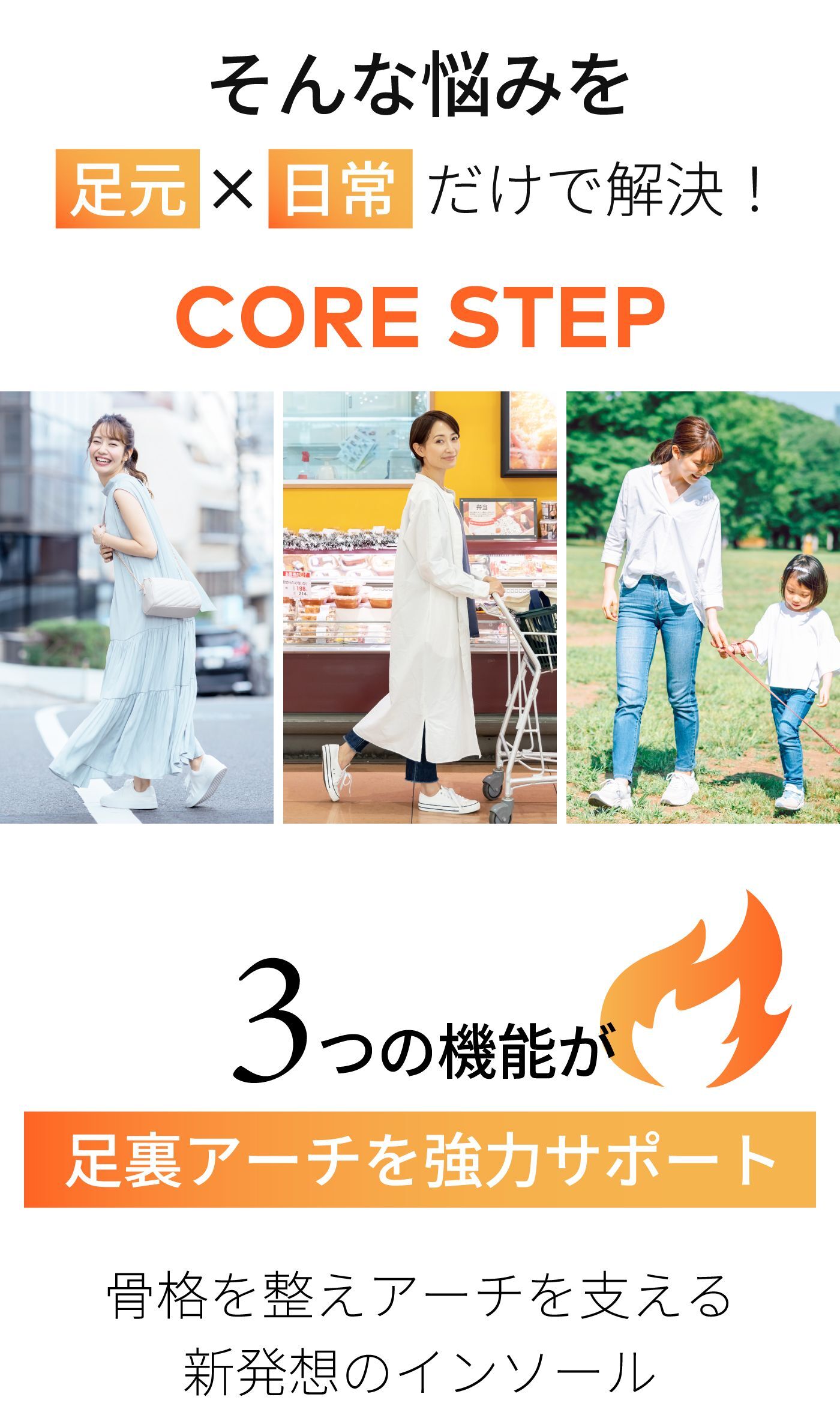 もともと靴に入っていたのインソールは取り外してご使用ください。 重ねてご利用いただく事により、CORE STEPの機能が失われる可能性がございますのでご注意ください。 元の中敷きの取り外しができずやむを得ず重ねる場合は、元の中敷きが薄いものであり、かつ靴のフィット感にゆとりのあるものに限ります。