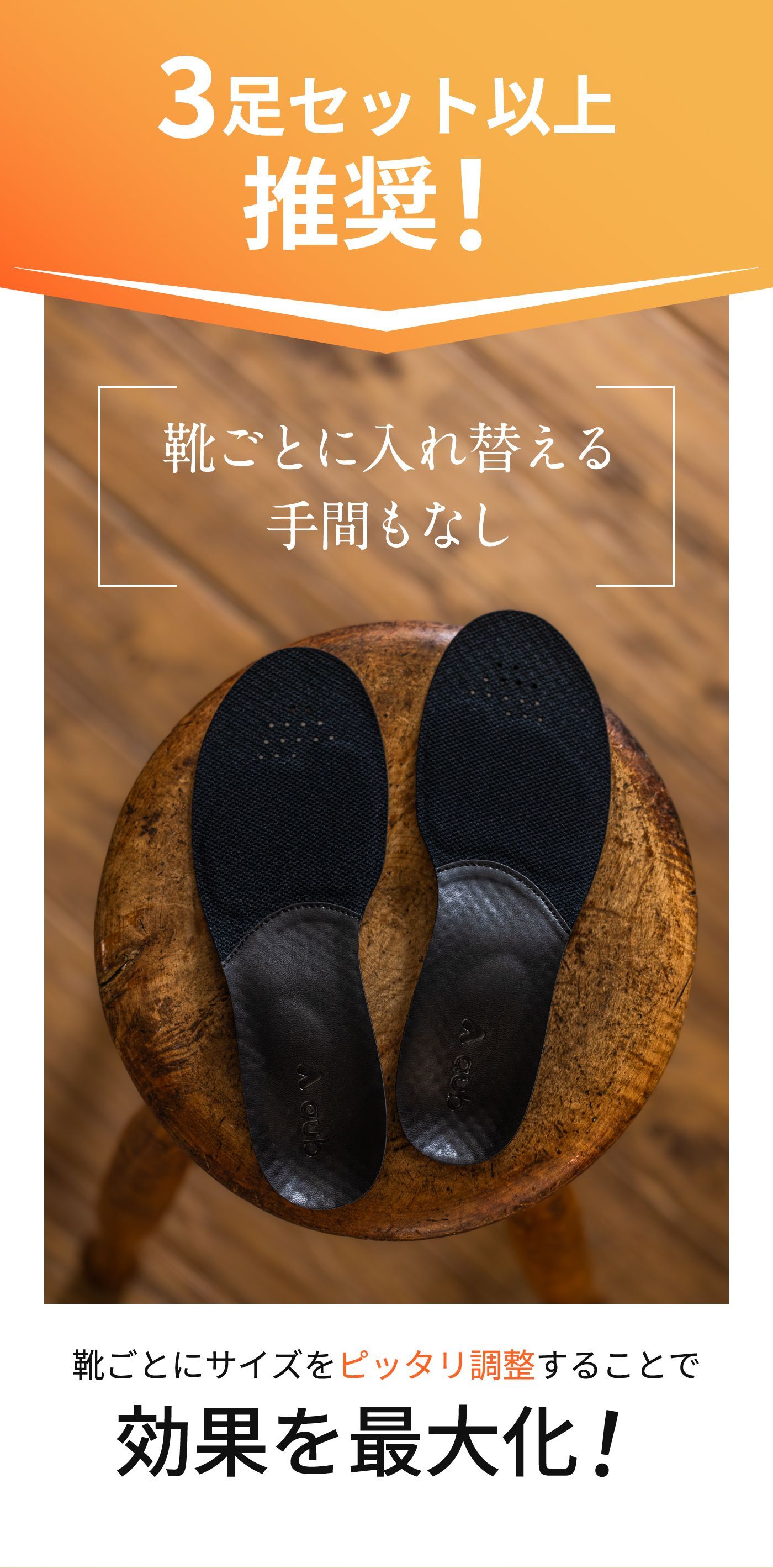 靴ごとにサイズをピッタリ調整してご使用いただくことで効果を最大化いただけますので、日常的によく使用する靴の数に合わせお持ちいただくことをお勧めしております。多くの方に3~5枚程度お持ちいただいています。